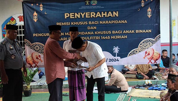 JEMBER (pelitaindo.news) – 941 warga binaan Lapas Kelas IIA Jember mendapatkan hadiah dari Pemerintah. Mereka mendapatkan Remisi Khusus Hari Raya Idul Fitri 1445 H pada Rabu (10/04/2023) tepat sesuai Sholat Id dilaksanakan. Kepala Lapas Hasan Basri menyerahkan SK Remisi secara simbolis kepada dua narapidana.