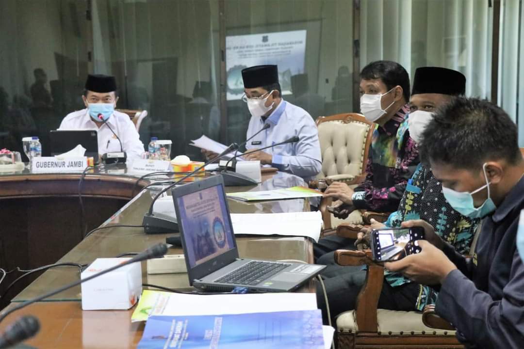 Modusinvestigasi.Online, Jambi – Bupati Tanjung Jabung Barat Drs. H. Anwar Sadat, M.Ag, menghadiri rapat bersama Pemerintah Provinsi Jambi dalam rangka persiapan Musabaqah Tilawatil Qur’an (MTQ) ke-50 Tingkat Provinsi Jambi di Aula Kantor Gubernur Jambi, Kamis (12/08/21).