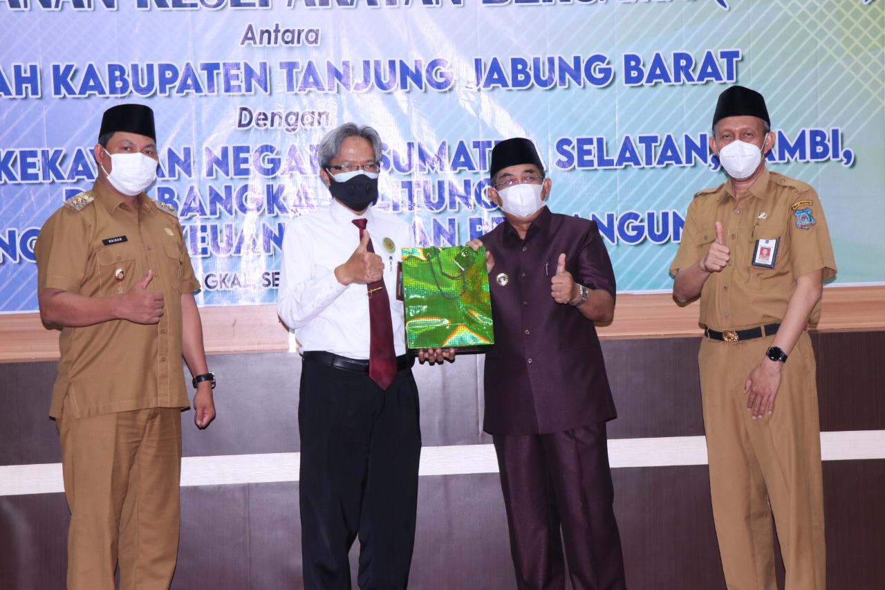 Modusinvestigasi.Online, Tanjabar – Bupati Drs. H. Anwar Sadat, M.Ag, melaksanakan Penandatanganan Kesepakatan Bersama (MoU) antara Pemkab Tanjung Jabung Barat dengan Kanwil Dirjen Kekayaan Negara Sumatera Selatan, Jambi dan Bangka Belitung serta Badan pengawas Keuangan dan Pembangunan (BPKP) Provinsi Jambi di Rumah Dinas Bupati, Senin (02/08/21).