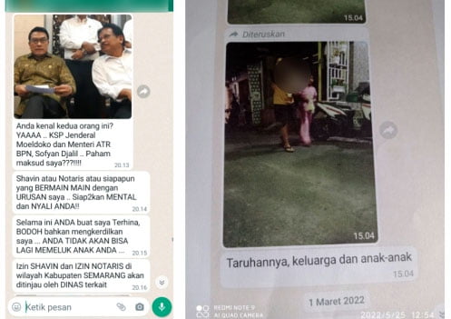 Selain PD, awak media juga mendapat telepon dari seseorang berinisial HP yang mengaku dari media Tribun Rakyat yang menyampaikan bahwa awak media merupakan wartawan Gali (bajingan-red) dan menuduh awak media mengancam dalam melakukan wawancara kepada notaris. (Liputan : Team)