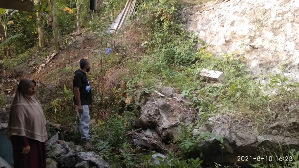 Kejadian jebolnya talud jalan hasil karya swasembada warga Rt.08/Rw.13 yang menimpa bangunan rumah milik seorang janda yang bernama Margiyem (53 )tahun, yang mana rumah tersebut ditempati Margiyem serta cucu perempuanya , kalau melihat kondisi rumah sangat mengkuatirkan dan sewaktu waktu bisa roboh, maka demi keselamatan jiwa akhirnya kontrak rumah untuk tempat tinggal dengan cucu perempuannya, padahal untuk menompang hidup sehari hari Margiyem berjualan pecel bersama cucu perempuannya yang masih sekolah,” Ujarnya.