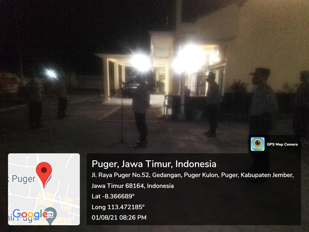 Modusinvestigasi.online, Jember – Apel jelang hari terakhir pembatasan PPKM darurat, Muspika kecamatan,Polsek Puger TNI tetap operasi, dalam melaksanakan tugas PPKM darurat.