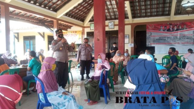 Modusinvestigasi.online, Purbalingga – Kapolsek Bukateja Iptu Wartono mengajak peserta vaksinasi untuk mematuhi protokol kesehatan (prokes). Hal itu disampaikan kapolsek saat meninjau pelaksanaan vaksinasi Covid-19 di Aula Balai Desa Kebutuh, Kecamatan Bukateja, Purbalingga, Sabtu (3/7/2021).