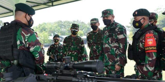 Modusinvestigasi.online, Sragen – Kasdam IV/Diponegoro Brigjen TNI Widi Prasetijono mewakili Pangdam IV/Diponegoro Mayjen TNI Rudianto melaksanakan Pemeriksaan Kesiapan Operasi Pengamanan Perbatasan Penyangga (Mobile) RI-PNG Yonif R 408/SBH TA 2021 di Lapangan Mako Yonif R 408/SBH, Jum’at (2/7/2021).