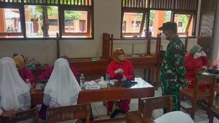 Kasdim menjelaskan, saat ini dosis vaksin yang didistribusikan di SMK Muhammadiyah 3 Weleri sekitar 500 dosis vaksin pertama jenis Sinovac.