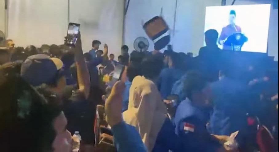 Video suasana ricuh di arena Rapimnas PB PMII tersebut viral di media sosial. Di video yang beredar terlihat peserta rapimnas yang mengenakan seragam biru khas PMII terlibat gesekan. Suara gaduh terdengar dari mereka. Satu peserta kemudian naik ke atas kursi, seperti hendak menyuarakan protes. Tak lama kemudian, tangan dari peserta lain terlihat memukul bagian pundak peserta yang berdiri di atas kursi. Nah, gara-gara itu peserta yang lain bereaksi dan suasana pun tambah tak terkendali. Kursi-kursi beterbangan mengarah ke kerumunan yang terlibat kericuhan. Momen gaduh terjadi sekitar pukul 16.00 WIB.