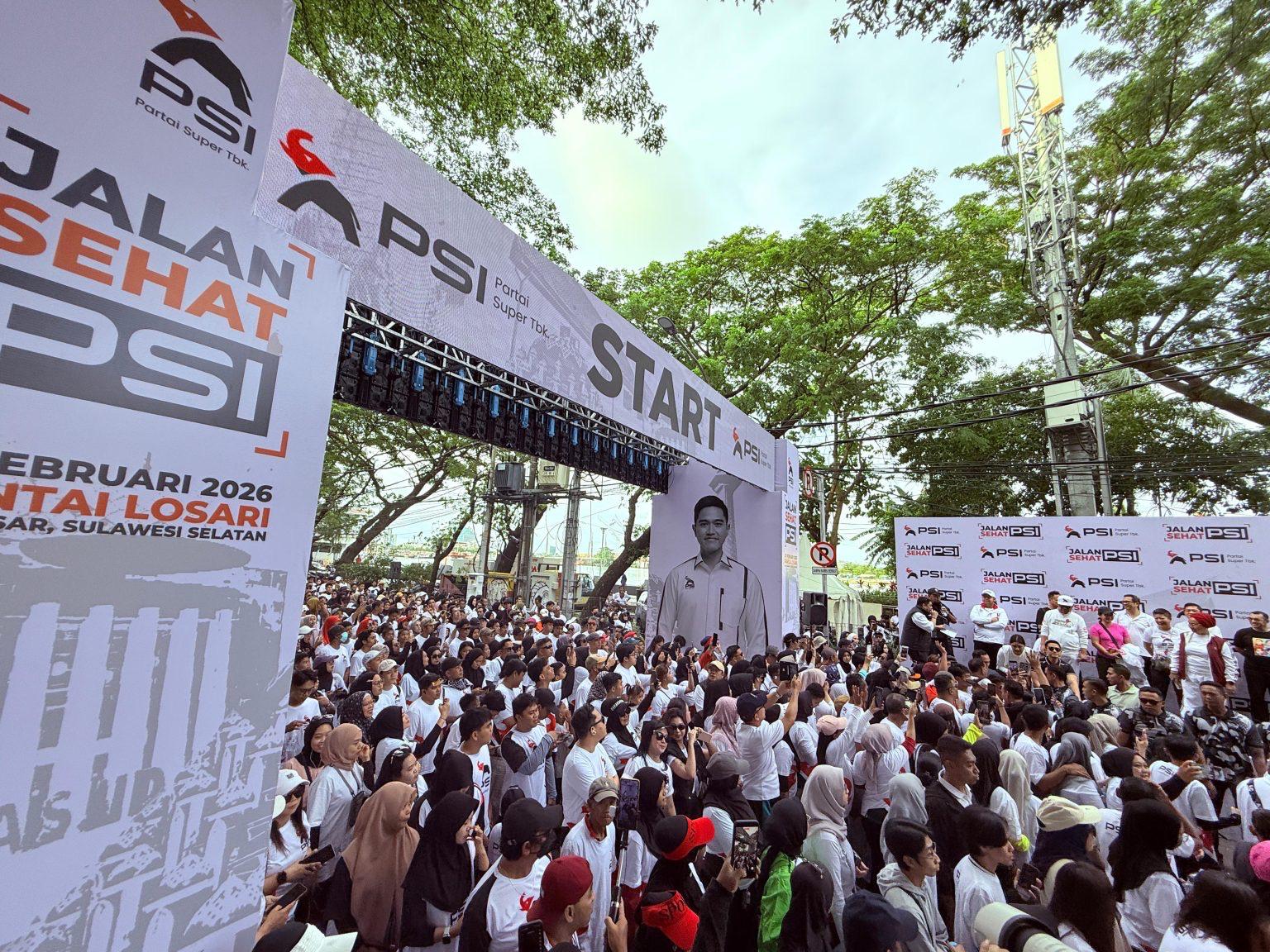 Tak sekadar ajang olahraga, kegiatan ini menjadi momentum silaturahmi PSI dengan masyarakat Sulawesi Selatan. Sebelum mengibarkan bendera start, Kaesang tampak memberikan semangat kepada ribuan peserta yang memenuhi kawasan Pantai Losari.