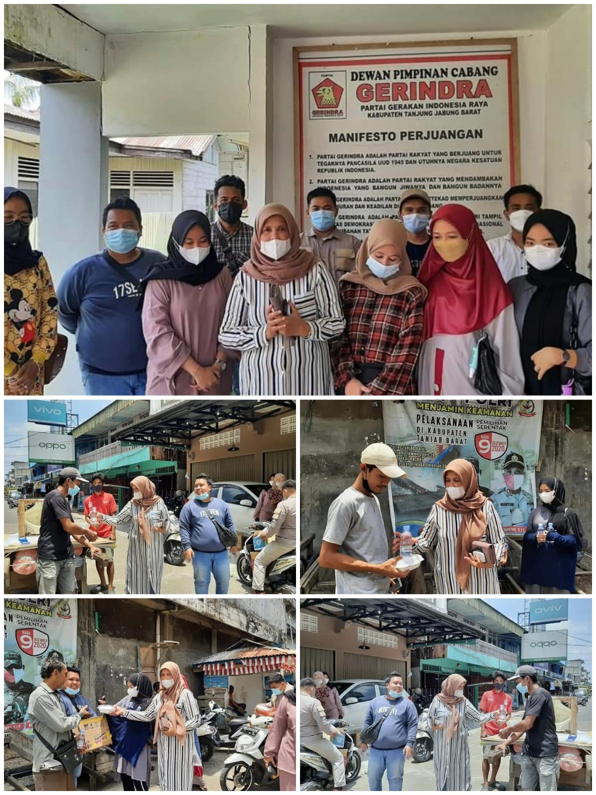 pelitaindonews, KUALA TUNGKAL – Pengurus Cabang Tunas Indonesia Raya (PC TIDAR) Tanjung Jabung Barat bersama Anggota Fraksi Gerindra DPRD Tanjab Barat Barat Ibu Hj. Erli Ani berbagi Nasi Kotak kepada Masyarakat Kuala Tungkal dalam rangka bentuk peduli terhadap kondisi masyarakat ditengah pandemi, Sabtu (11/9/21).