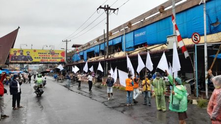 Modusinvestigasi.Online, Pematangsiantar – Pedagang Pasar Horas Kota Pematangsiantar memasang bendera putih. Mereka mengaku telah menyerah dengan kondisi perekonomian yang memburuk akibat wabah Covid-19 selama pemberlakuan pembatasan kegiatan masyarakat (PPKM) level 4.