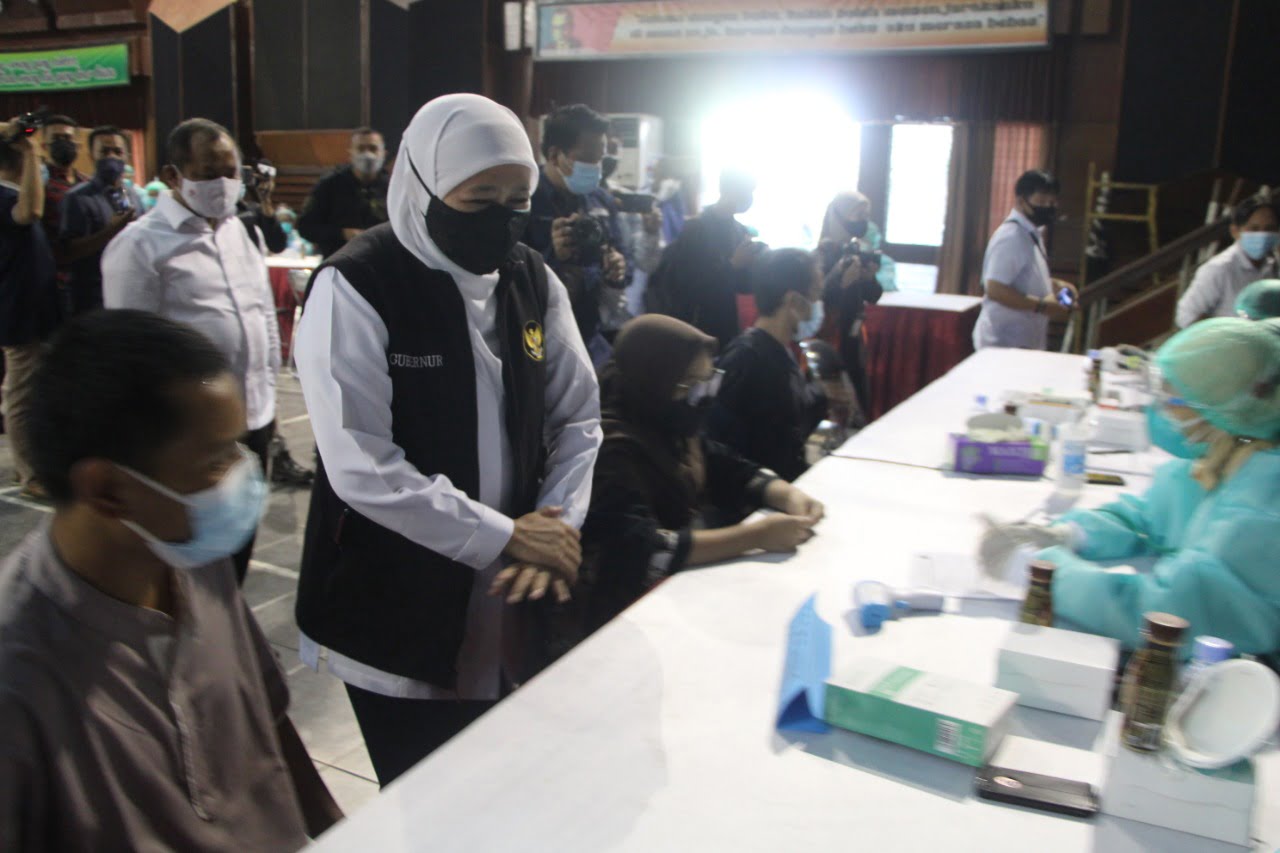 Gubernur melihat dari dekat pelaksaan kegiatan vaksinasi,yang dilaksanakan keluarga besar Universitas Jember, anggota KAUJE dan warga Jember di lokasi Gedung Soetardjo dan Gedung Auditorium hari Sabtu pagi.