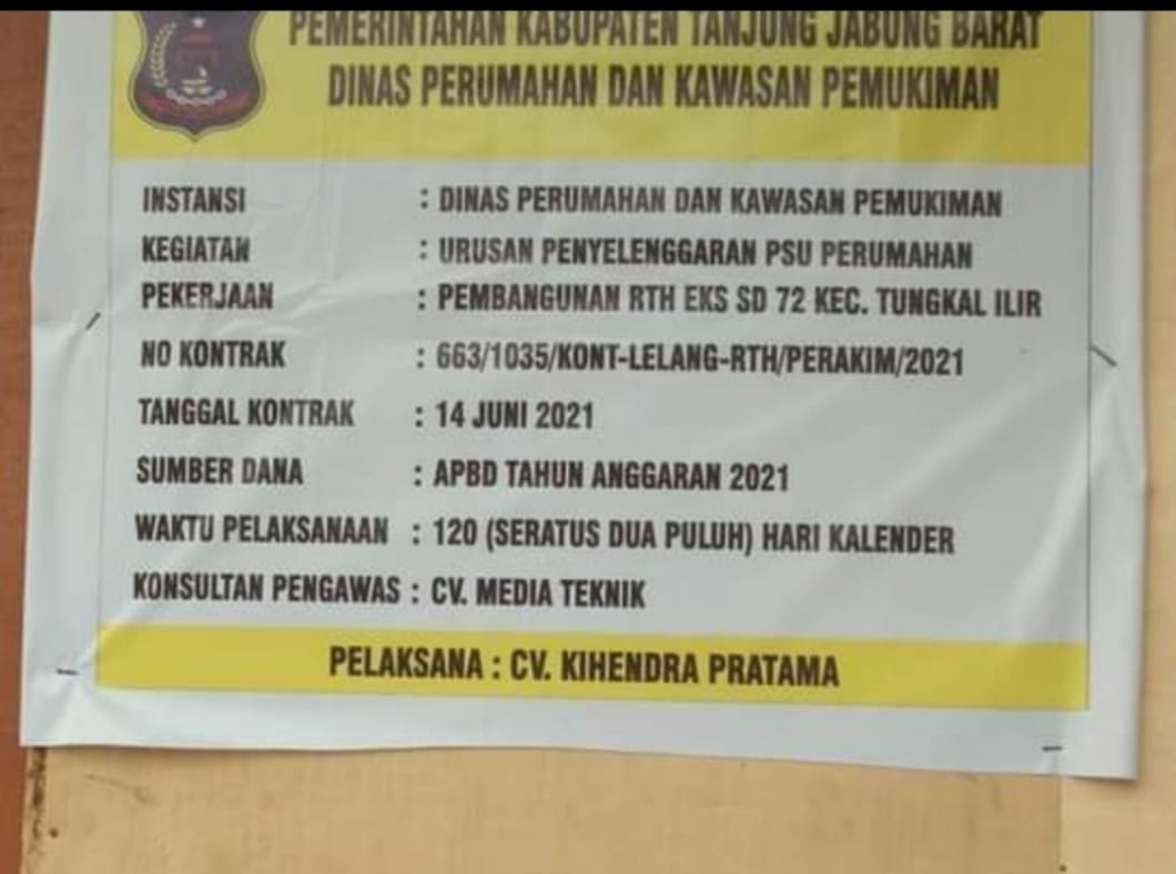 Ketua LSM JPK (Jaringan Pemantau Kewenangan) untuk Wilayah Kab,Tanjab Barat Rahmadi sekaligus mewakili warga jalan Bahagia Kelurahan Sriwijaya juga menyoroti pembangunan RTH di Eks SD 72 jalan Bahagia,yang perlu di perhatikan pihak rekanan seperti rambu rambu untuk pekerjaan ini perlu dipasang juga mekanisme pekerjaan ini tolonglah di atur sebaik mungkin jangan sampai nanti nya terjadi incident yang tak di inginkan dan beliau juga berharap agar Pak Bupati bisa melihat pembangunan RTH tersebut.