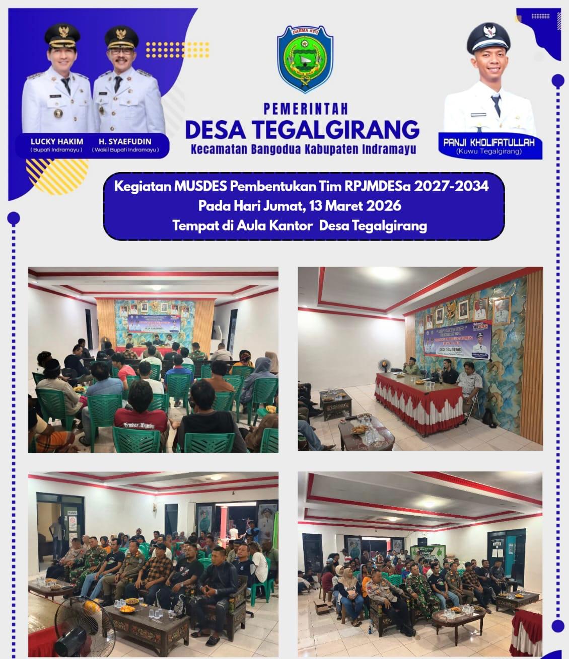 INDRAMAYU (Pelitaindonews) – Pemerintah Desa (Pemdes) Tegalgirang, Kecamatan Bangodua, Kabupaten Indramayu, Jawa Barat, sukses menyelenggarakan Musyawarah Penyusunan Perencanaan Pembangunan Desa dalam rangka sosialisasi pembangunan desa sekaligus pembentukan Tim Penyusun Rencana Pembangunan Jangka Menengah Desa (RPJMDes) periode 2027–2034.