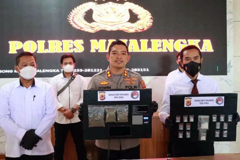 MAJALENGKA (pelitaindo.news) – Satuan Reserse Narkoba Polres Majalengka, Jawa Barat, membekuk seorang pengedar atau pengecer narkoba jenis sabu-sabu, dan ganja kering dengan modus tempel. “Tersangka yang kami tangkap itu berinisial TJ (26) warga Kabupaten Indramayu,” kata Kapolres Majalengka AKBP Edwin Affandi di Majalengka, Selasa.