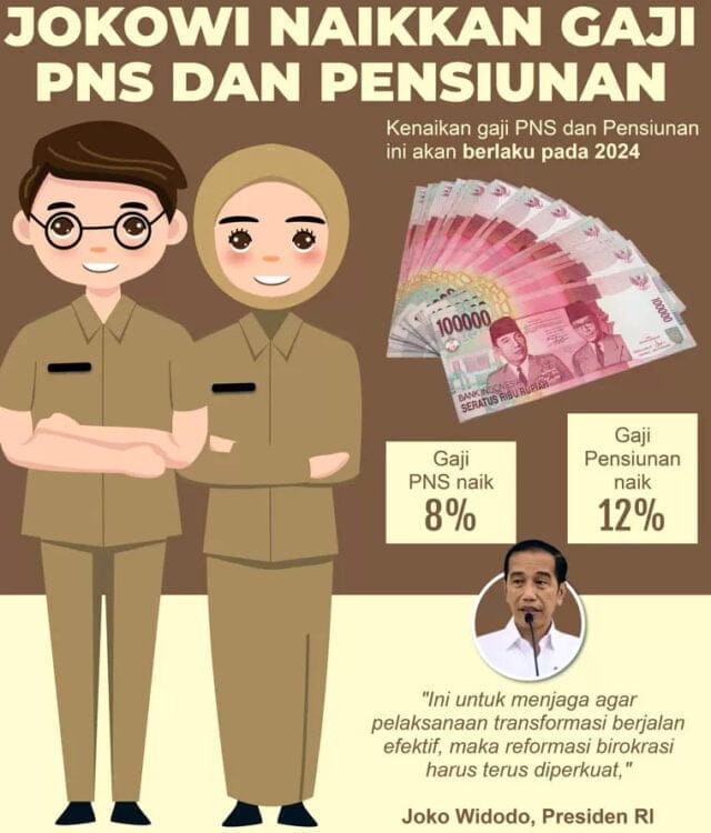 Pensiunan PNS di harapkan dapat menunggu informasi resmi terkait kenaikan gaji sebesar 12% di tahun 2024. Demikian informasi seputar gaji pensiunan PNS, semoga informasi ini bermanfaat untuk anda. *(Red)