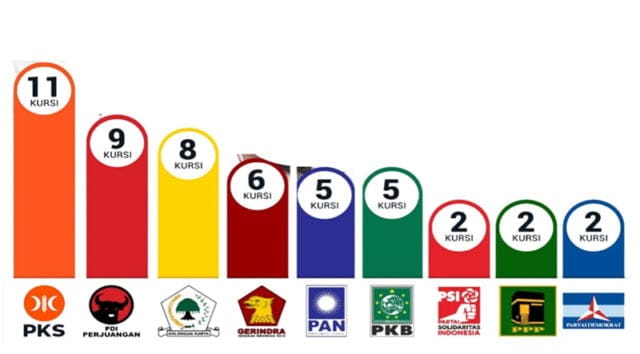 Untuk perolehan suara DPRD Jawa Barat dapil Jabar 8 Kota Bekasi-Depok, PKS masih merajai dengan 3 kursi dari 11 kursi yang tersedia, disusul Partai Golkar 2 kursi.