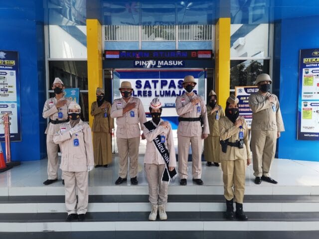 Modusinvestigasi.Online, LUMAJANG-Peringatan Hari Bhayangkara ke-75, anggota Satpas Polres Lumajang menggunakan baju Polisi jaman dulu.