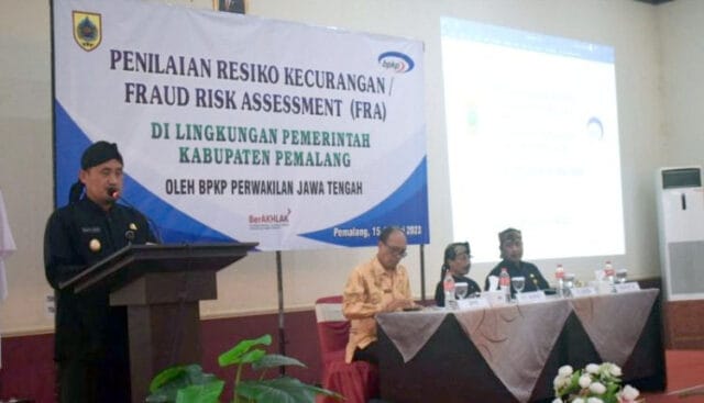 PEMALANG (pelitaindo.news) – Plt Bupati Pemalang Mansur Hidayat memerintahkan jajaranya untuk meningkatkan nilai maturitas Sistem Pengendalian Intern Pemerintah (SPIP) Terintegrasi. Hal itu dikatakan Mansur saat membuka kegiatan Penilaian Risiko Kecurangan (Fraud Risk Assesment/FRA) oleh BPKP Perwakilan Jawa Tengah di salah satu hotel di Pemalang, Senin (15/5/2023).