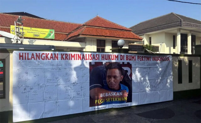 Berdasarkan pantauan di Pengadilan Negeri Bandung, terlihat sebuah spanduk dukungan kepada Pegi Setiawan.