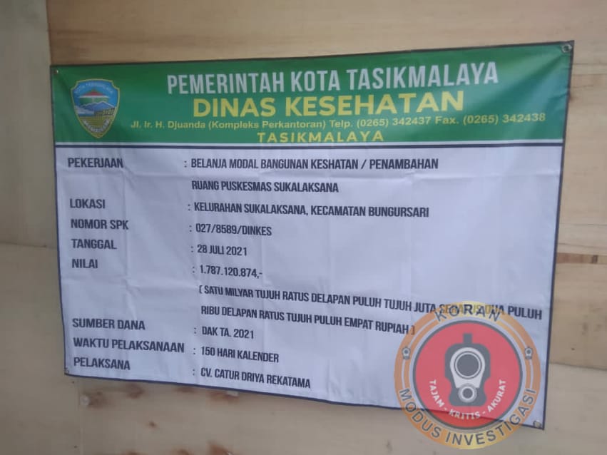 Salah satu contoh Belanja Modal /Penambahan ruang Puskesmas Sukalaksana,kelurahan Sukalaksana kecamatan Bungursari yang bersumber dari Dana Dak 2021 dengan pagu anggaran Rp.1.787.120.874,- yang di kerjakan oleh CV CATUR DRIYA REKATAMA akhir-akhir ini mendapat sorotan dari beberapa awak media, pasalnya saat Tim investigasi ke lapangan, ditemui beberapa item dan SOP pekerjaan tidak dilaksanakan sesuai perintah kontrak kerja.