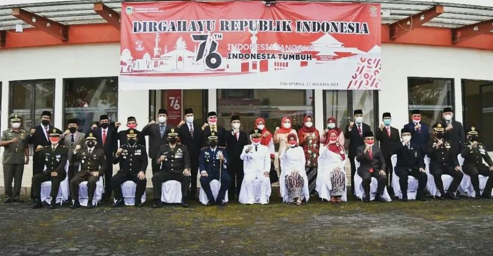 Upacara Penurunan Bendera dilaksanakan di Lapangan Upacara Halaman Belakang Sekretariat Daerah, Selasa (17/08/2021).
